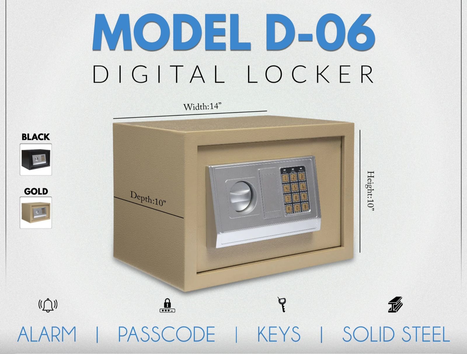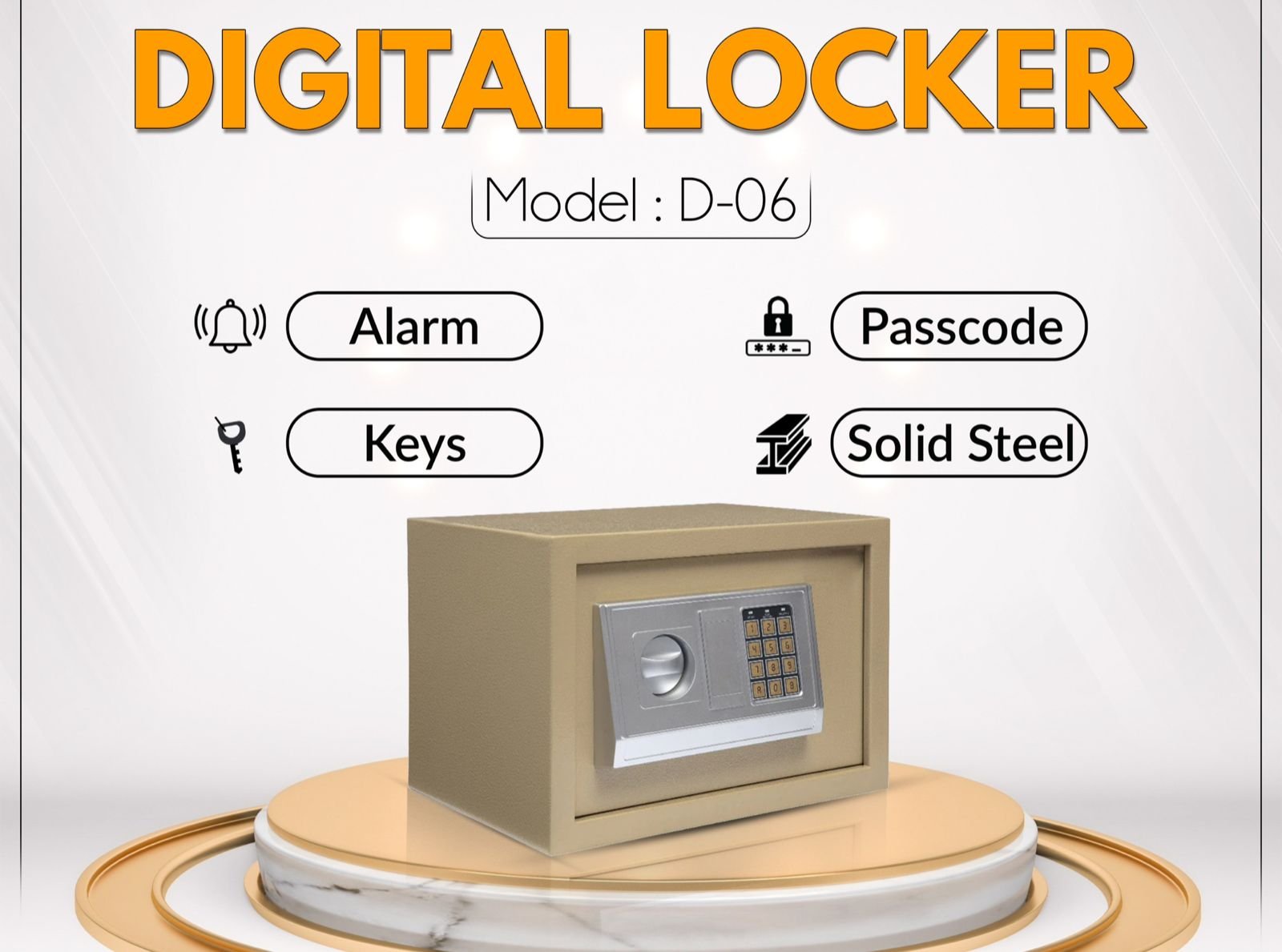 Protect your hard-earned cash, expensive jewelry, and important documents with the high-security D-06 Digital Safe Locker. Designed to blend seamlessly into your home, office, or shop, this electronic safe provides top-tier security and peace of mind. It features a fully programmable digital keypad for quick access and comes with manual override keys in case you forget your PIN or the batteries run out.