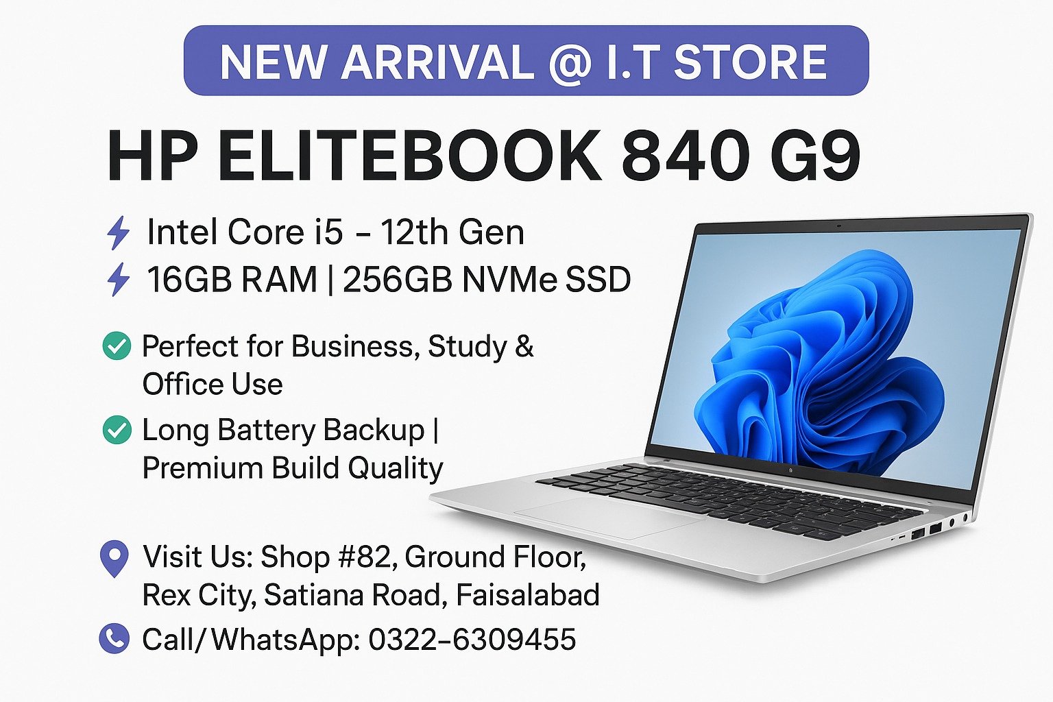 Whether you’re searching for the best HP 840 G9 price in Pakistan, an efficient office notebook, or a reliable Core i7 laptop for students, itstore offers competitive pricing, authentic quality, and delivery across Pakistan. Upgrade your productivity with the powerful and stylish HP 840 G9 laptop today!
