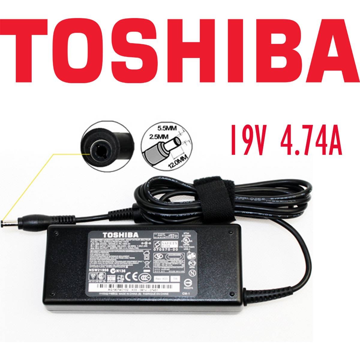 TOSHIBA 19V 4.74A 90W 5.5 2.5 TIP LAPTOP POWER ADAPTER/ LAPTOP CHARGER